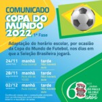 Faremos uma adaptação do horário escolar, por ocasião da Copa do Mundo de Futebol, nos