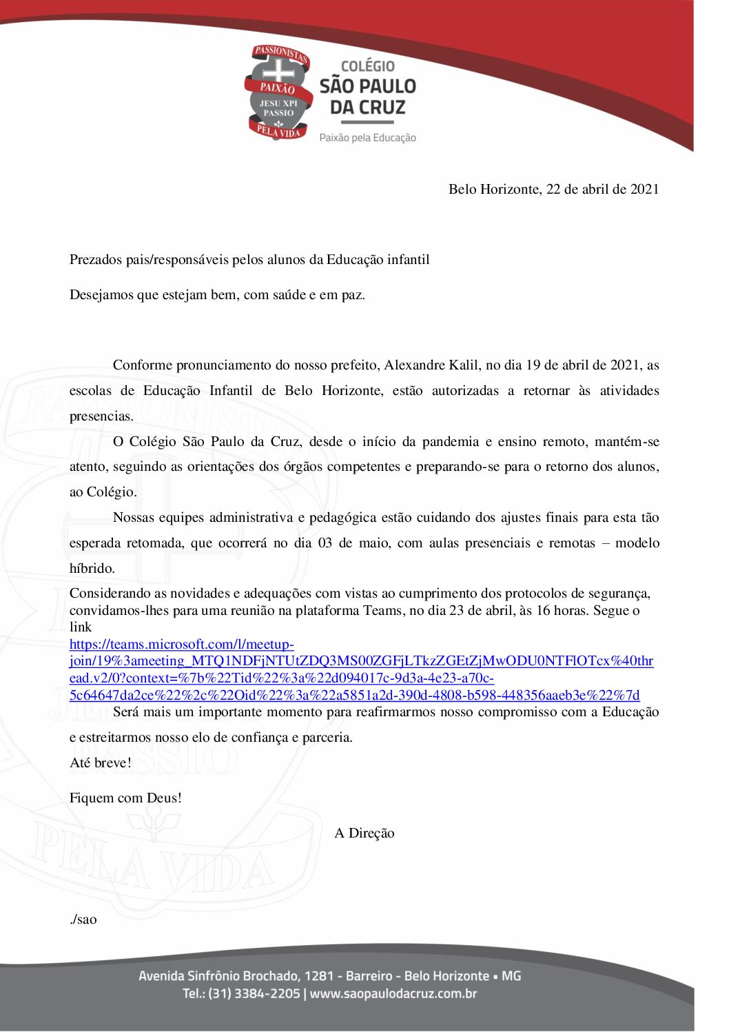 Os Comunicados importantes do Colégio São Paulo da Cruz são sempre enviados para o e-mail dos pais/responsáveis.